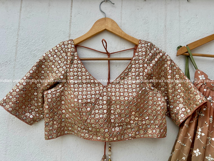 Ideal for wedding guests, sangeet nights, receptions, or festive parties, this lehenga blends modern aesthetics with traditional Indian craftsmanship.