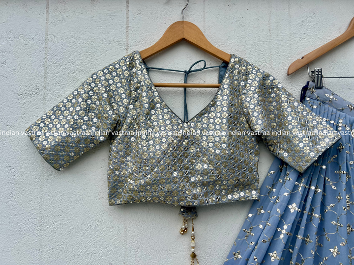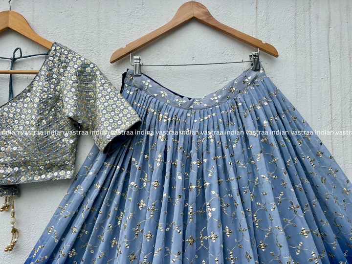 Ideal for wedding guests, sangeet nights, receptions, or festive parties, this lehenga blends modern aesthetics with traditional Indian craftsmanship.