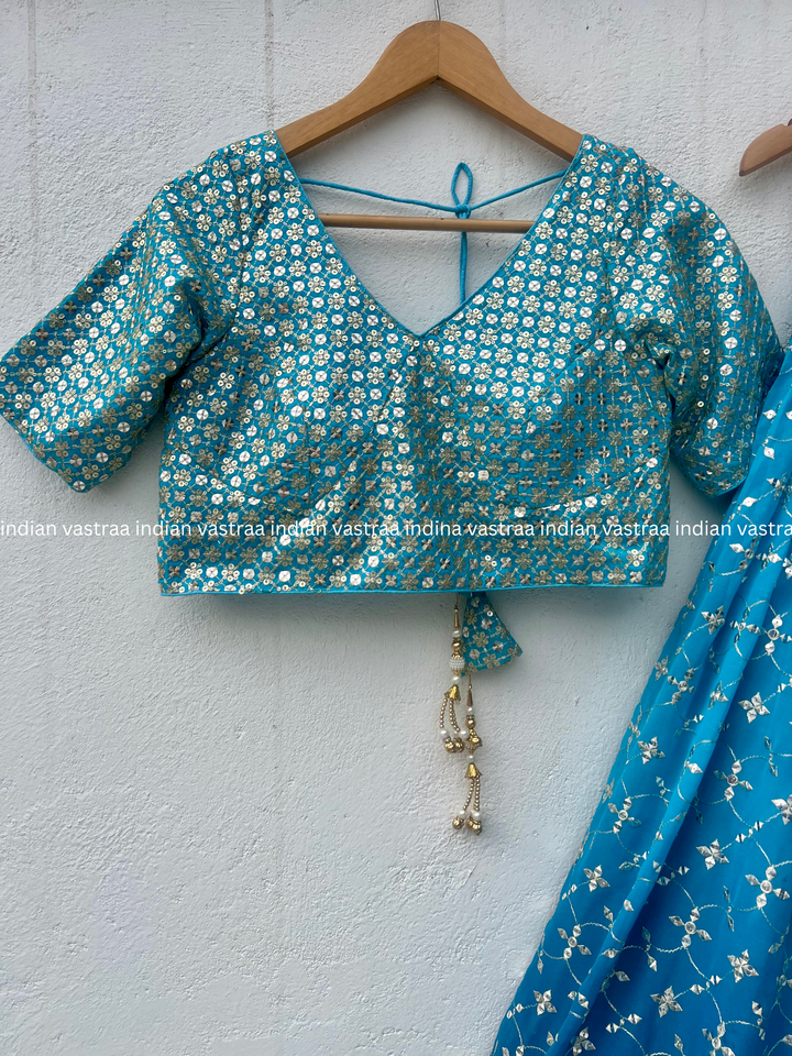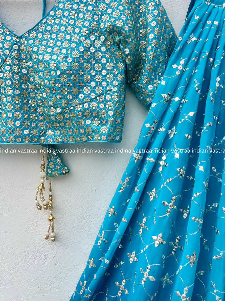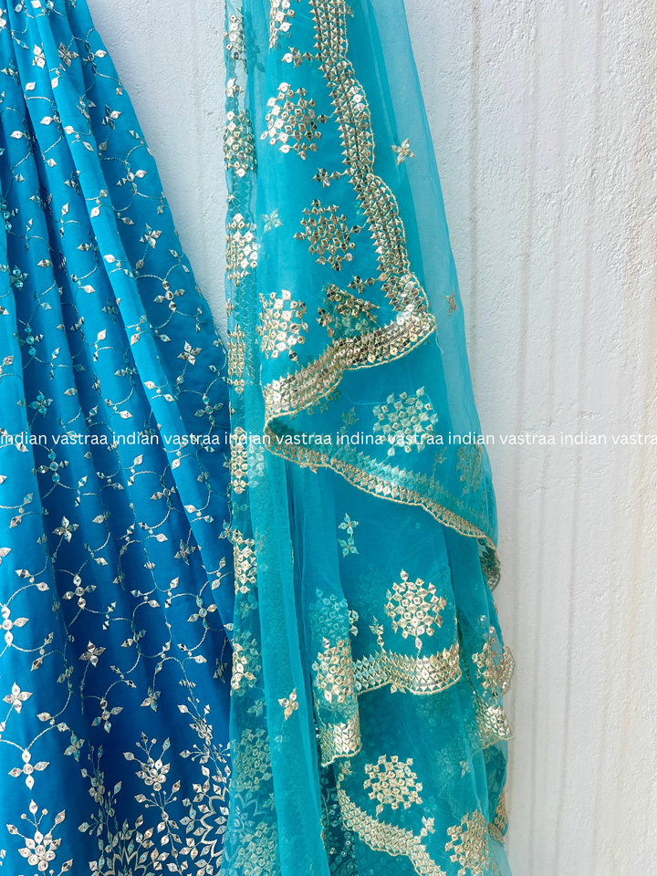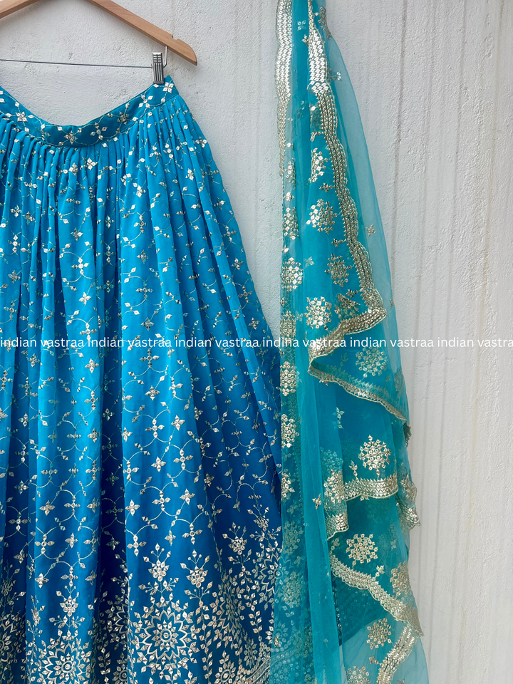 Teal Blue Ombre Georgette Lehenga Choli